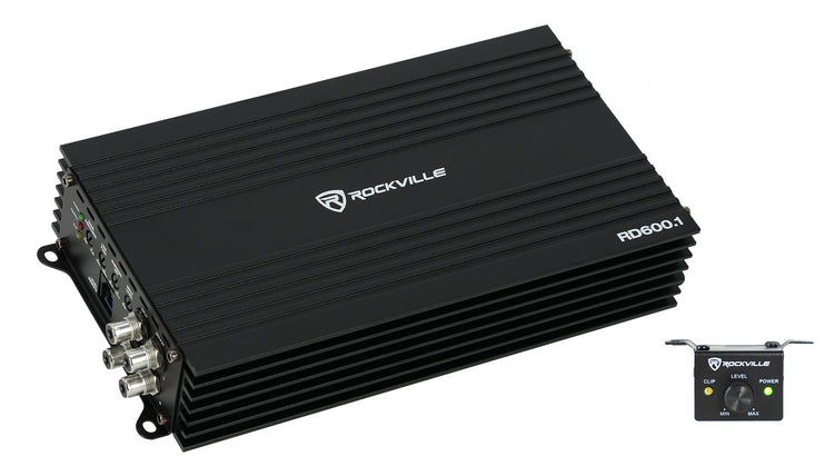 Compact Mono Car Amplifier, 600 watts RMS, Bass Remote with Clip Indicator, Low Pass & Subsonic Filters