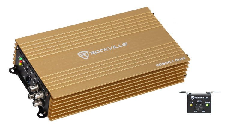 Mono Car Amplifier, 600W RMS, Bass Remote, Low Pass and Subsonic Filter, Gold
