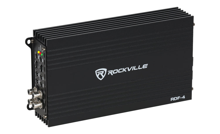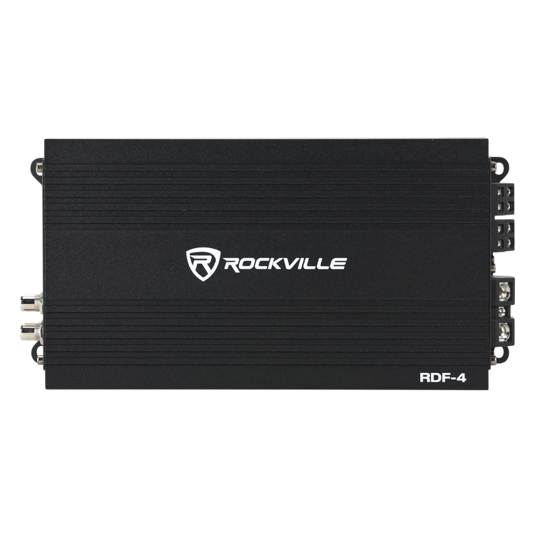 The Rockville RDF-4 delivers powerful, distortion-free audio for your car's sound system with genuine Class D amplification technology. Engineered to power front and rear speakers or bridge channels for subwoofer applications, this compact amplifier fits installations where space is limited. From daily commutes with crystal-clear highs to weekend road trips with deep, resonant lows, the RDF-4 adapts to your listening preferences with configurable crossover settings. High-efficiency design minimizes battery strain while Tiffany-style RCA terminals and LED monitoring indicators simplify installation and performance tracking. Experience clean, powerful sound that brings your music to life with precision and clarity.
