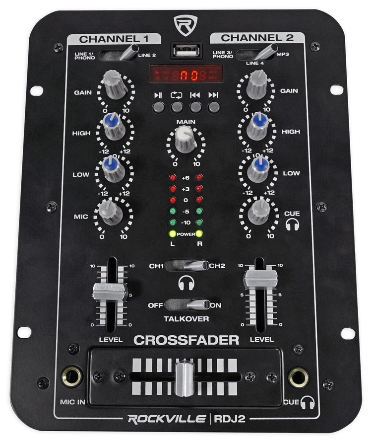 Compact 2‑Channel DJ Mixer With USB Playback & Cue Control