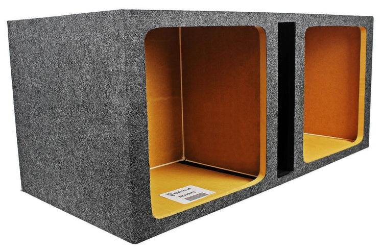 The Rockville RDVK15 dual 15" vented square subwoofer enclosure is crafted in the USA from Grade “A” ¾” MDF, designed for Kicker Solo Baric and other square woofers. Precision-cut mounting holes and gold spring-loaded terminals reflect a commitment to quality and performance. The enclosure’s robust construction, advanced glue, and silicon-sealed seams deliver lasting durability and resonance, while the vented design and 3.25 cu ft net volume per sub optimize bass output. Perfect for custom car audio builds, the RDVK15 blends American craftsmanship with acoustic excellence, making it an essential upgrade for those seeking powerful, distortion-free sound.