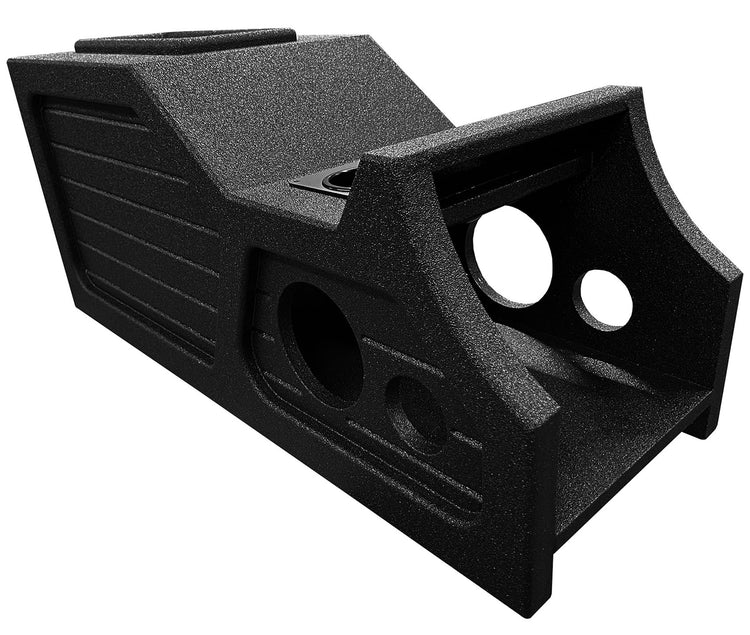 This center console 12" vented sub box delivers powerful, controlled bass for GM/Chevy Crew Cab 2007–2013 builds. Precision-cut 5/8" USA MDF resists flex for clean output, while real bed liner seals the enclosure for lasting durability. Designed for easy integration with most 12" woofers, it offers 2.05 cu ft net air space, up to 11" mounting depth, and additional cutouts for 3.5" tweeters and 6.5" speakers. Glued, stapled, and silicon-sealed seams maintain acoustic integrity under daily use. Perfect for OEM-plus upgrades, show builds, and daily drivers needing tight, deep, resonant lows with a factory-style fit.