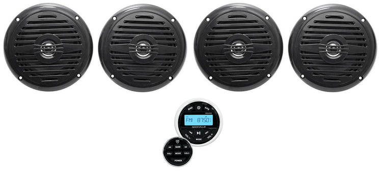 4 Zone Marine Receiver + 5.25" Black Speakers 4-Pack Bundle