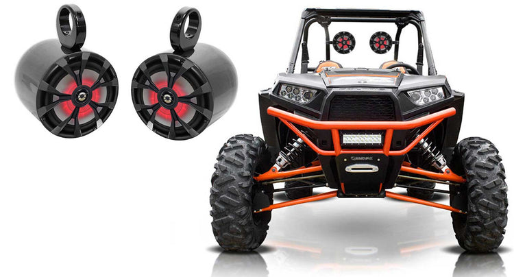 Add refined style and strong projection to RZR, ATV, and boat towers with two 8" LED coaxials in black aluminum cans. Internal wiring hides connections for a clean, custom look. The IP66-rated drivers handle spray and sun while delivering crisp highs and muscular midbass. With universal clamps and included inserts, the install is straightforward and secure, giving your build a premium visual and sonic upgrade.