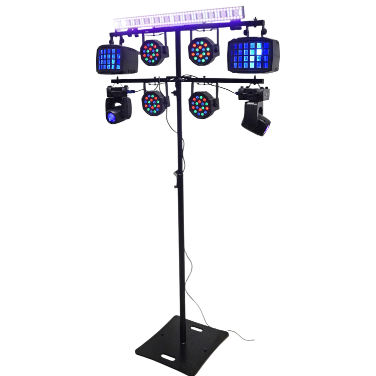 Switch between lighting, audio, or projection setups with ease. The included foldable T-Bar supports up to nine lights, and the detachable, tiltable projector tray with safety straps adapts to your needs.