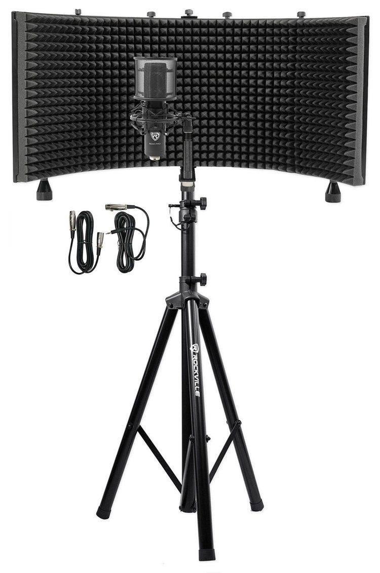 Assemble a portable vocal booth with stable floor mounting. The RockShield 3 surrounds the mic with dense acoustic foam for cleaner, present recordings, while the RVES05 tripod anchors the rig at adjustable height. The RCM PRO condenser adds smooth highs and a confident midrange for podcasts, voiceover, and singer‑songwriter sessions. With shock mount and cables included, this set delivers a polished, studio‑forward sound in home spaces and mobile rooms.