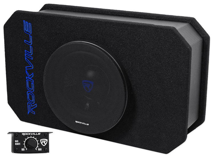 8" Powered Subwoofer, 800W Peak, Compact Tunnel Slot Ported Enclosure, Built-In Class D Amp, Includes Grill, Remote Bass Knob