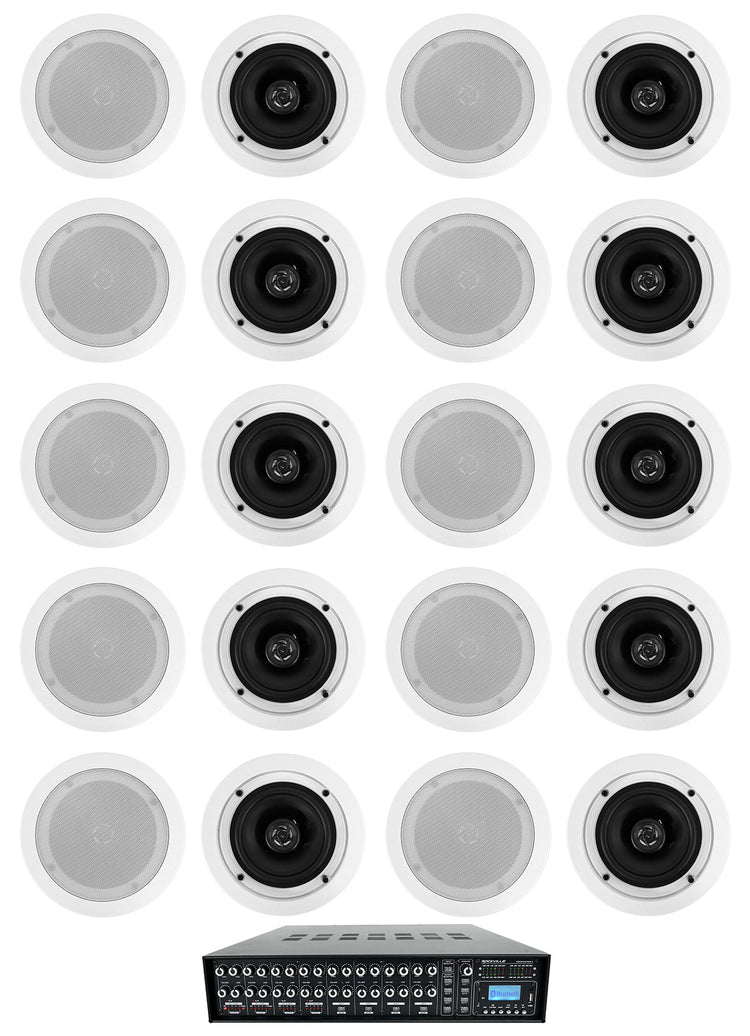 4-Zone 70V Matrix Amp, 20x 5.25" Ceiling Speakers, Bluetooth, USB, SD