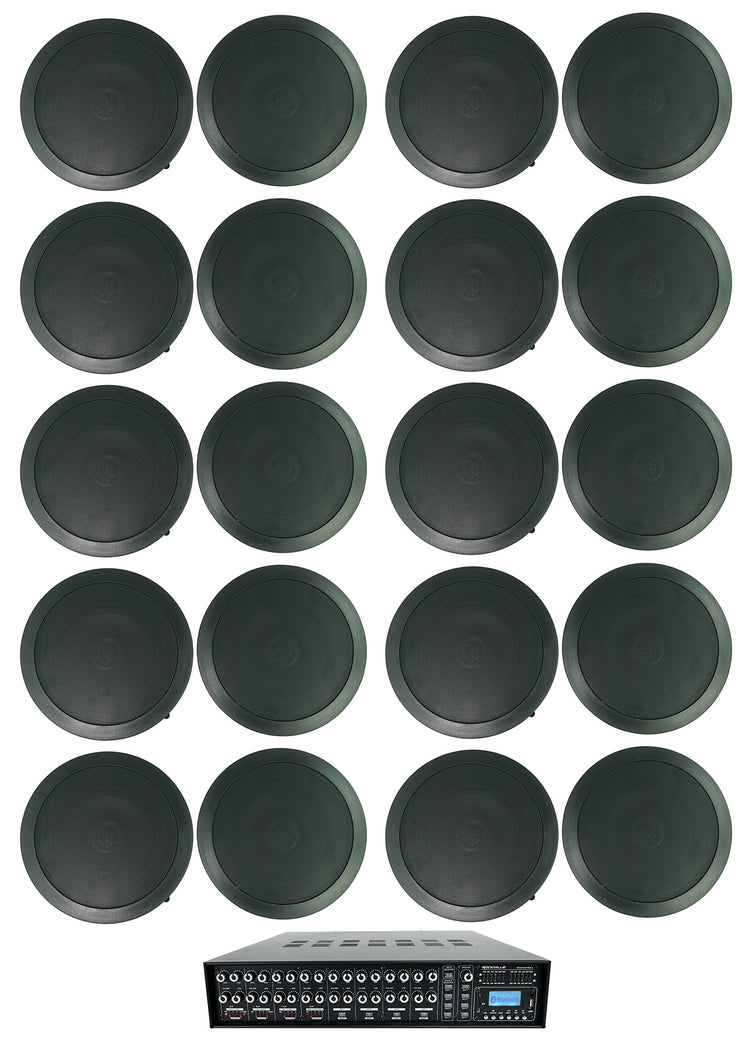 4-Zone 70V Matrix Amp, 20x 6.5" Black Ceiling Speakers, Wide Coverage