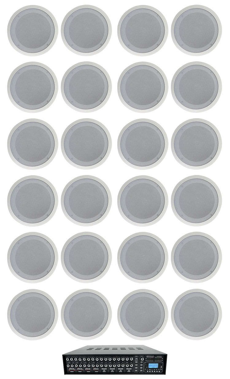4-Zone 70V Matrix Amp, 24x 8" White Ceiling Speakers, High Output