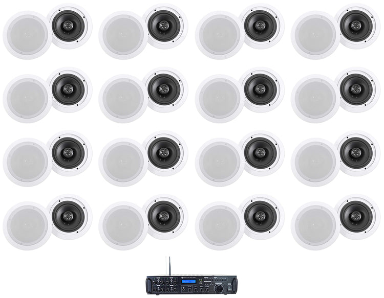 8‑Zone Receiver, 32x 6.5" 16‑Ohm In‑Ceiling Speakers, Bluetooth, Optical, USB