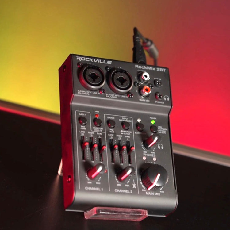 Designed to fit any workspace, the ROCKMIX 2BT’s sleek, mini footprint is matched by robust build quality. Independent EQ, pan, and level controls on each channel allow for precise sound shaping, while low power consumption offers flexible powering options.