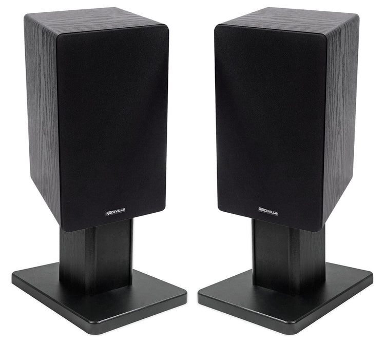 Rockville RHT8B Desktop Speaker Stands blend premium aesthetics with acoustic performance. Designed for computer, bookshelf, and studio speakers, they feature a sturdy build, high-density fiber core, and isolation pads for optimal sound. With a 66 lb capacity, they suit diverse setups, from creative studios to elegant home audio spaces.