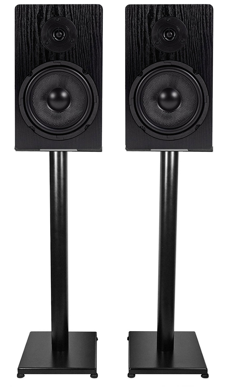 6.5" Bookshelf Speakers, 1 Pair, 29" Steel Stands, Gold 5-Way Posts, EVA Pads