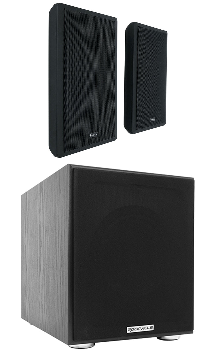 Slim 5.25" Wall Speakers, 2‑Pack, With 8" 200W RMS Powered Sub, Black Finish