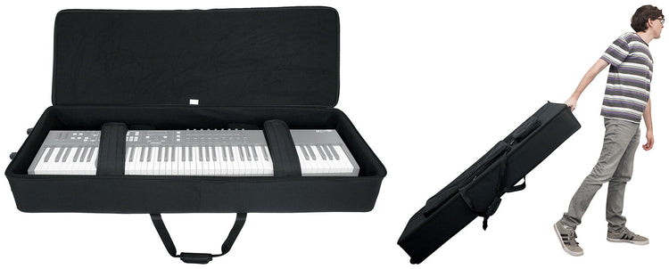 76-Key Rolling Keyboard Bag, 51.57" x 18.11" x 6.3" Interior, 53.54" x 18.9" x 6.89", Wheels, Pockets