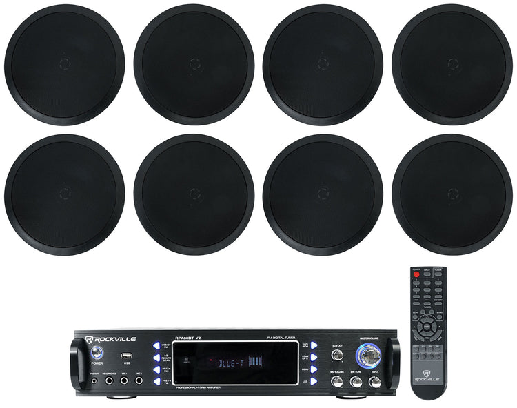 1000W Bluetooth Receiver, 8 In‑Ceiling 8" Speakers (Black), 16‑Ohm Architecture
