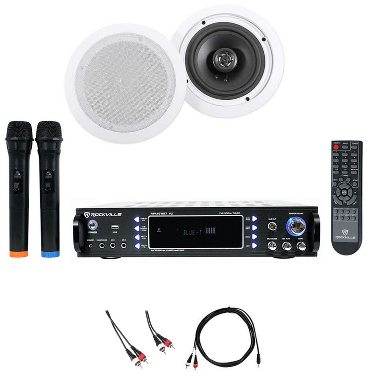 Bluetooth Karaoke Receiver, 2x 6.5" In‑Ceiling Speakers, 2 Wireless Mics, Pro Cables