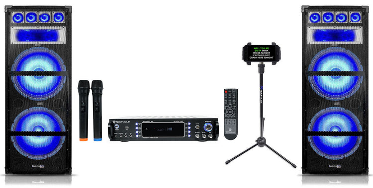 RPA70WBT Karaoke Receiver + Dual 15" LED Speakers Bundle