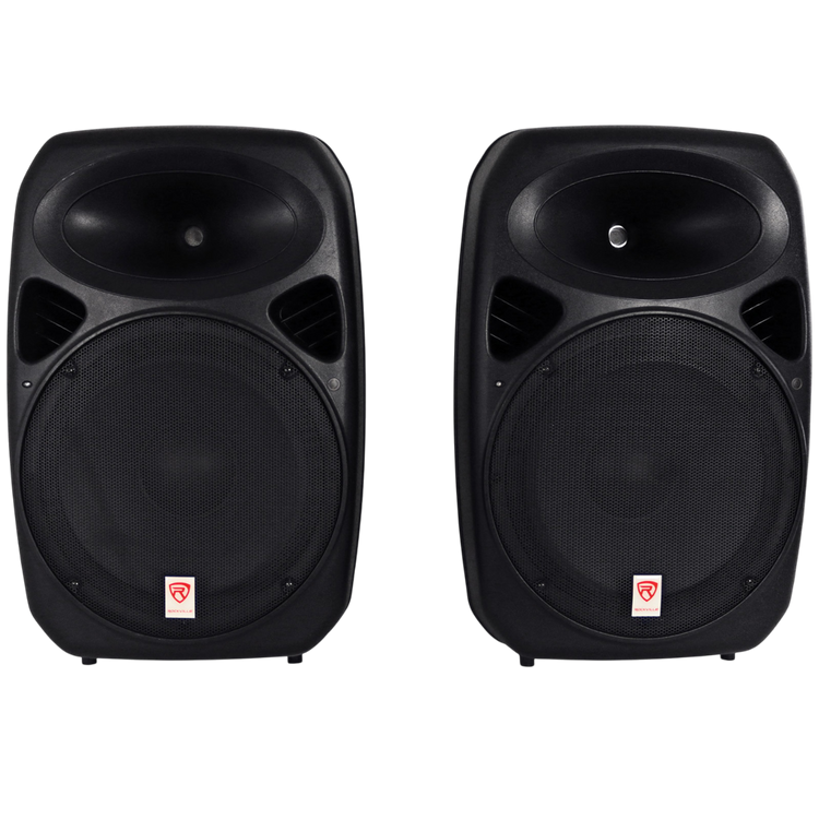- (2) 15" DJ/PA speakers (1 active with built‑in amp, 1 passive)