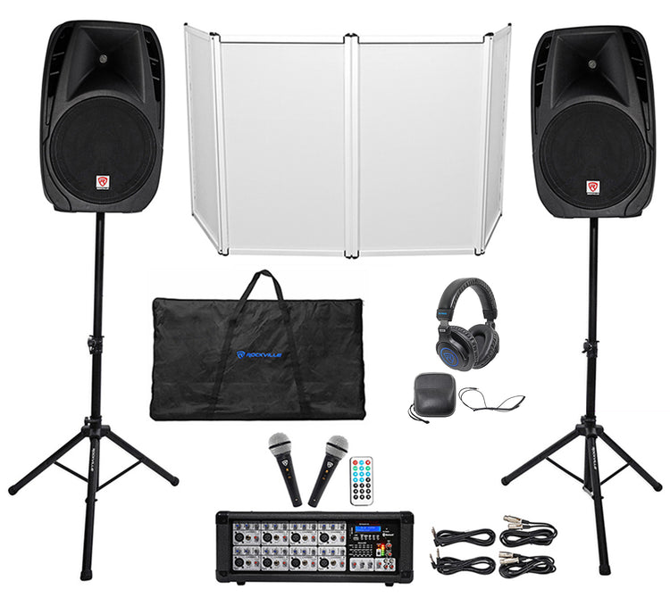 Powered Mixer 1400W, Dual 15", Facade, Headphones, (2) Mic Kits