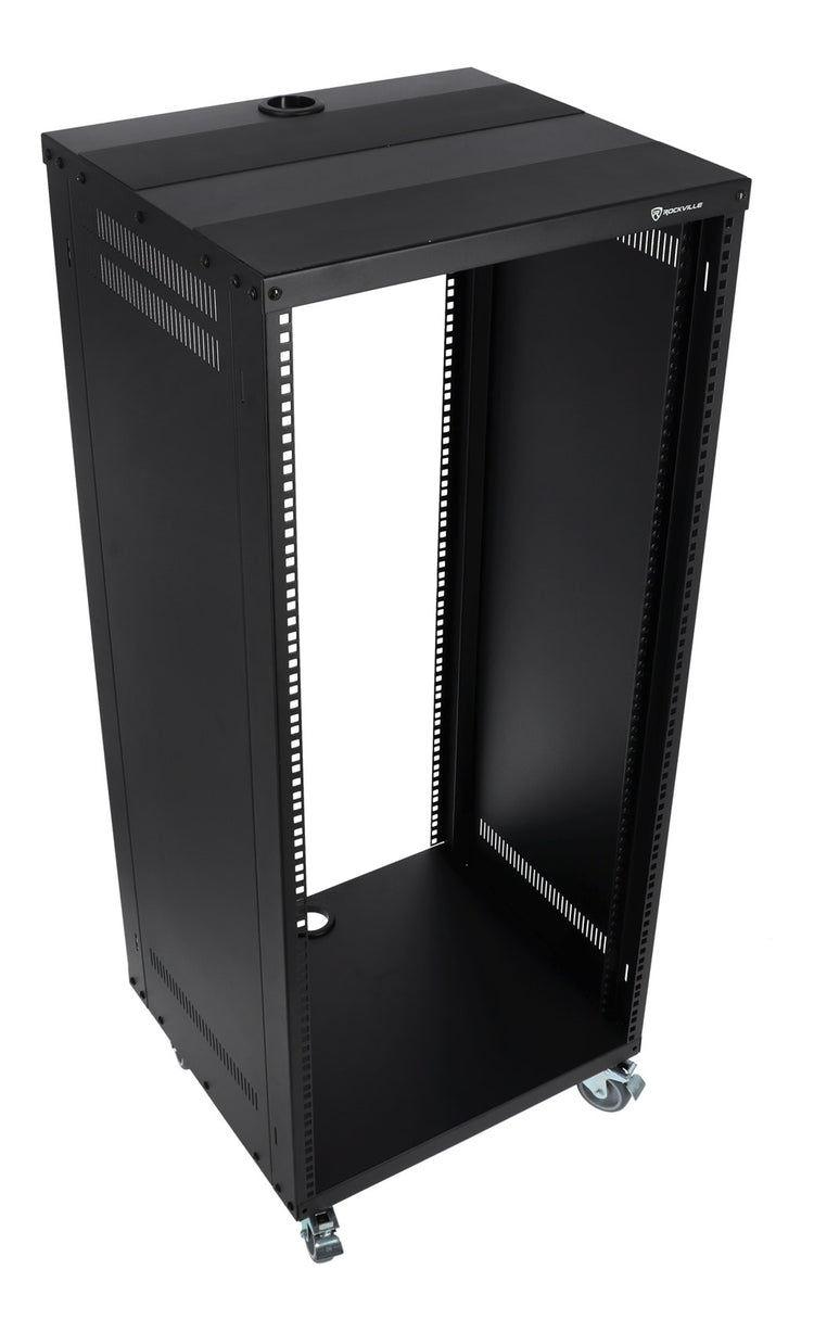 Where convenience meets professionalism – introducing the Rockville RR24U Rack, complete with wheels and hardware. With unparalleled versatility and strength, this storage solution is designed for both live sound and recording studio settings. The RR24U Rack can accommodate a wide range of studio and gig equipment, with a holding capacity of 440lb and 3” locking caster wheels for easy transport. Dual screw designs, including, threaded circle screws and square cage nuts, allow for seamless assembly in addition to its reversible rack rails. Keep your cable ports organized with the RR24U Rack’s cable management system, allowing the show to go on.