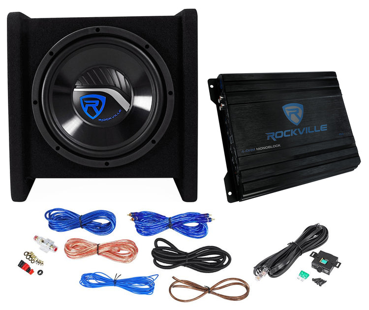 The Rockville RV10.1D is a complete bass solution, engineered for those who demand punchy, deep sound and seamless integration. Featuring a high-efficiency 10" subwoofer in a ported, angled enclosure, this system delivers powerful, clean bass with every note. The included mono block amplifier is CEA-2006 compliant, ensuring true, reliable power output. With a dash-mount bass remote and a premium wiring kit, installation is straightforward and performance is optimized. Designed as a cohesive system, every component—from the enclosure to the amplifier—works in harmony to bring immersive, resonant bass to any vehicle, all in a compact, stylish package.