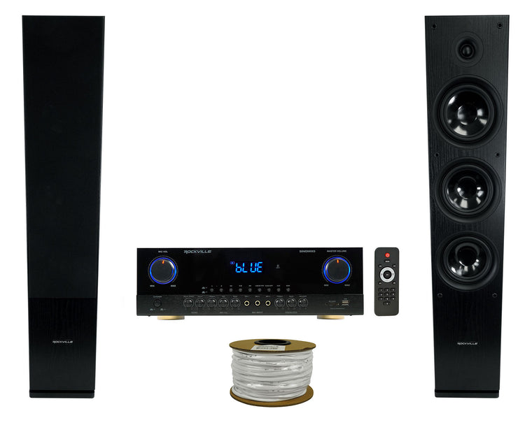 Karaoke Receiver, 600W RMS, (2) Black 3-Way Towers, 100' CL2 Wire