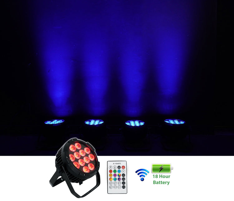 Water Resistant Battery DJ Par Light With DMX Control, Includes Remote, Dual Bracket, Powercon Cable