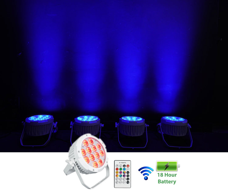 Rechargeable Par Can, (4) 6 W RGBWA+UV LEDs, Up to 15 Hrs of Battery, Wireless DMX, IRC Remote