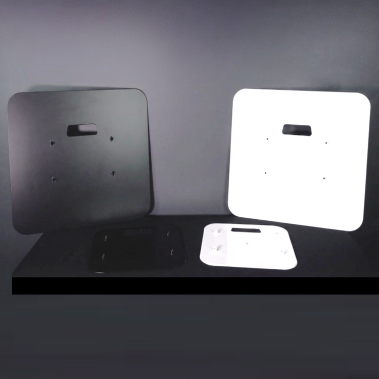 White Totem Stand Plates, Steel Construction, 24.6" Base, 11.8" Top, Includes Top and Bottom Plates