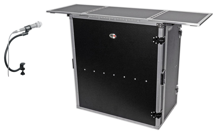 ProX XS-DJSTN Portable Foldout Mobile DJ Combo Table Facade+Gooseneck Mic Stand